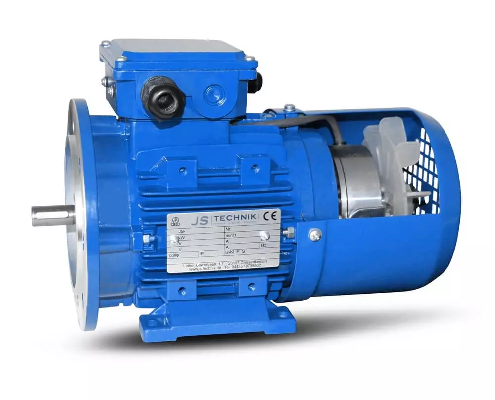 Die Federdruckbremse bremst den Elektromotor im stromlosen Zustand. Im Umrichter- Betrieb ist die Bremse