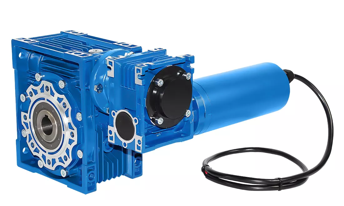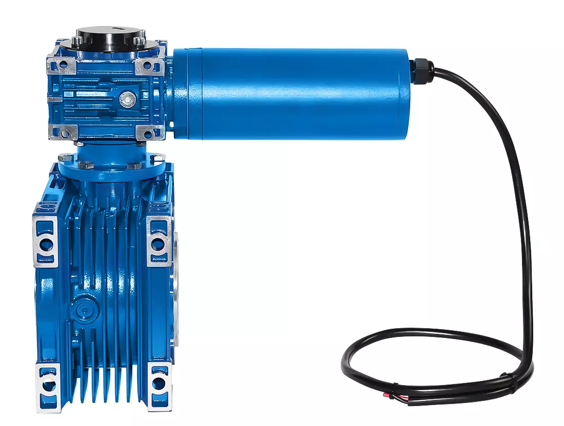Doppel-Schneckengetriebe mit DC-Motor, IP66, Leistung= 0,14 kW, Drehzahl= 5,6 Upm