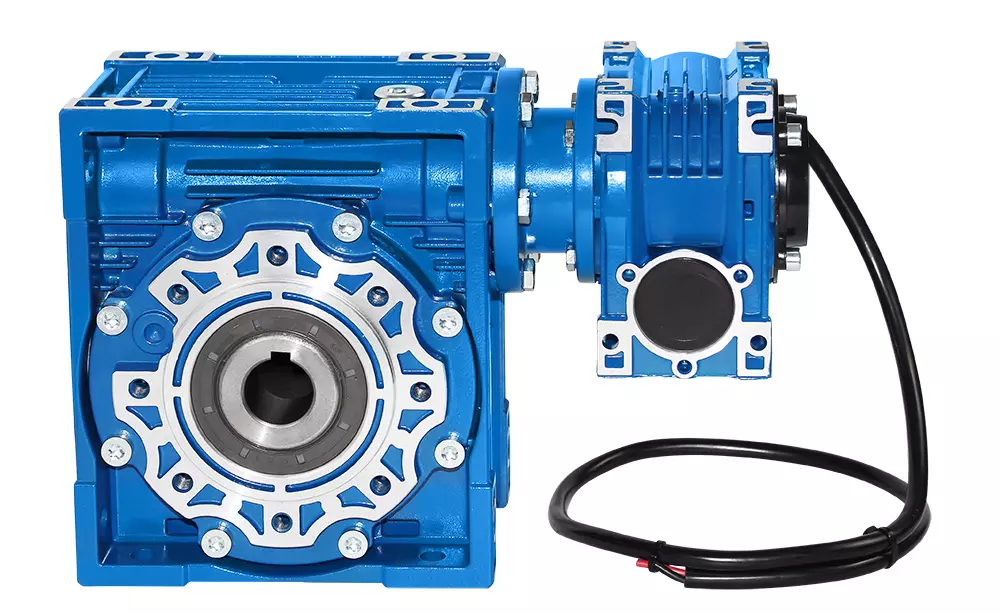 Der Getriebemotor kann in beide Drehrichtungen betrieben werden und enthält eine Ölfüllung bei Lieferung.