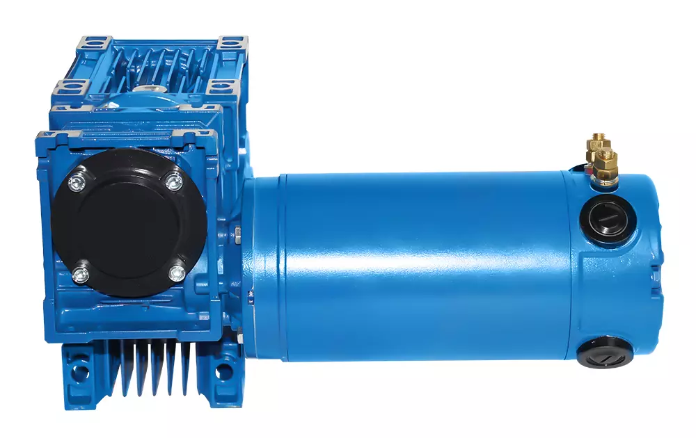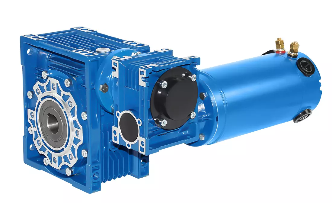 Doppel-Schneckengetriebe mit DC-Motor, IP40, Leistung= 0,35 kW, Drehzahl= 9,4 Upm